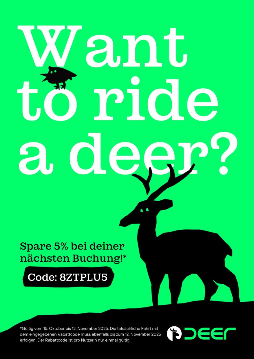 Zudem verfügt das deer Mobilitätsnetz über Stationen an den Flughäfen Frankfurt, Karlsruhe/Baden-Baden und Stuttgart. KundInnen können mit dem #deerFlughafen ihre Fahrt vom oder zum Flughafen bestreiten.