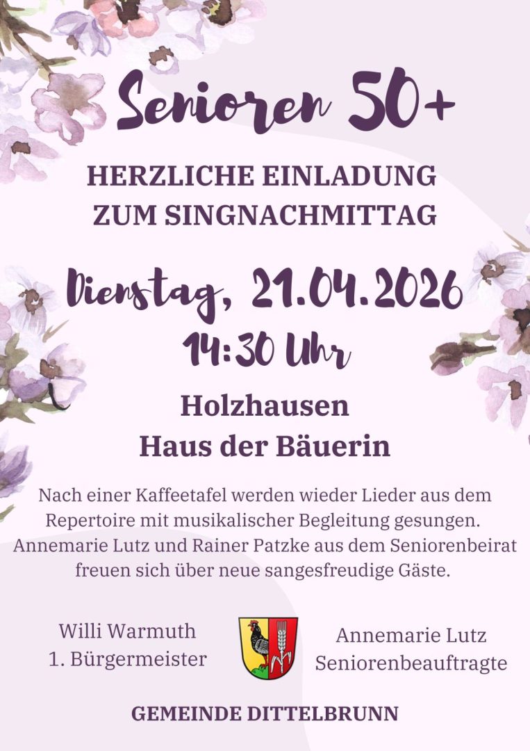 Einladung zum Singnachmittag der Senioren 50+ am 21.04.2026