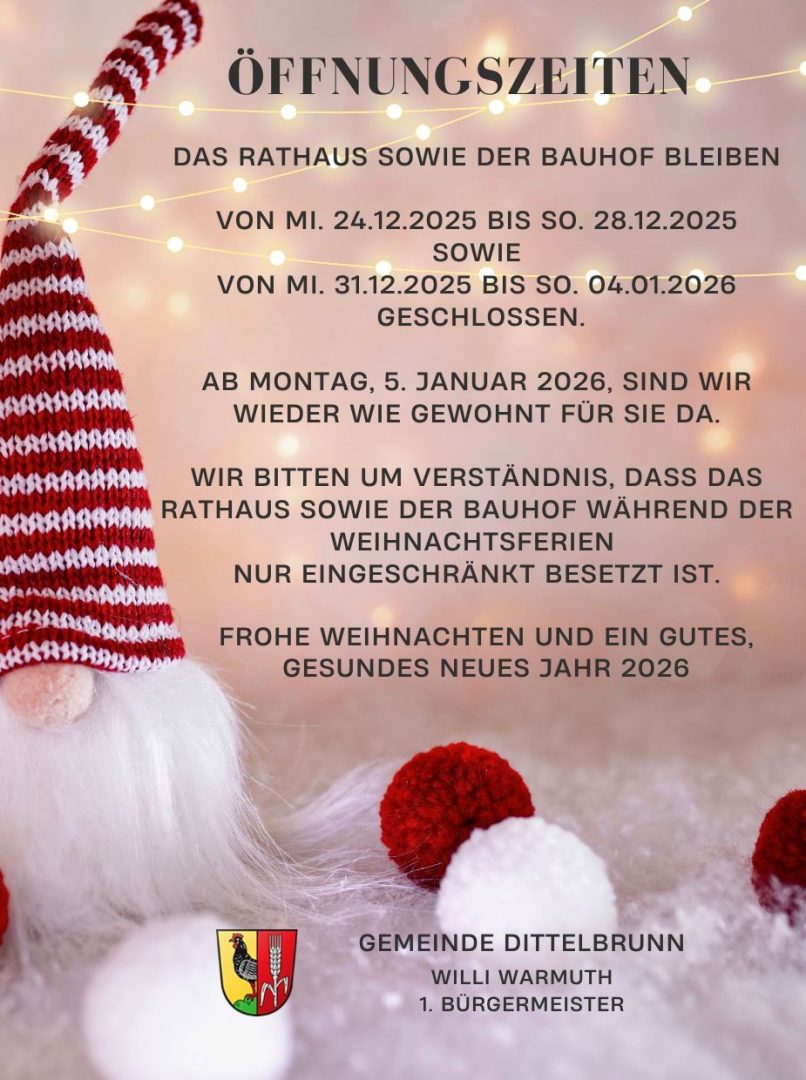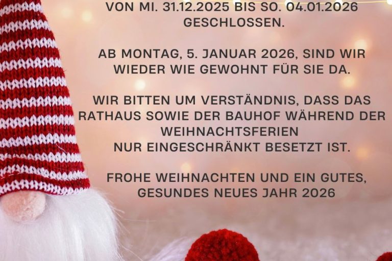 Öffnungszeiten Rathaus & Bauhof rund um die Weihnachtstage…